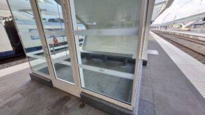 Côté positif, on notera l’accessibilité, c’est-à-dire tous les quais sont surélevés et accessibles par un ascenseur ou une rampe, qu’elle est équipée de lignes de guidage pour les personnes aveugles et malvoyantes, et qu’au moins un automate de vente est accessible à tous. On soulignera aussi l’intermodalité avec des parkings souterrains pour voitures et vélos, l’intégration des bus des TEC. On pourra aussi se rassasier, ou effectuer quelques emplettes dans les commerces qui devraient finir de s’implanter prochainement. Enfin, last but not least, les aménagements de part et d’autre de la gare côté place Léopold et hôtel van der Valck sont réussis, et plus besoin de bus pour se rendre aux Grands-Prés !